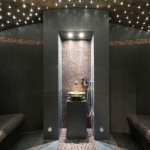 Ruangan steam menggunakan ubin keramik , mosaic, marmer bisa juga dikombinasikan dengan kaca yang dilengkapi system sirkulasi uap . kursi biasanya dipasang lebih tinggi agar mendapatkan uap yang sempurna , untuk mendapatkan uap lebih rendah bisa memasang dudukan kursi lebih rendah.